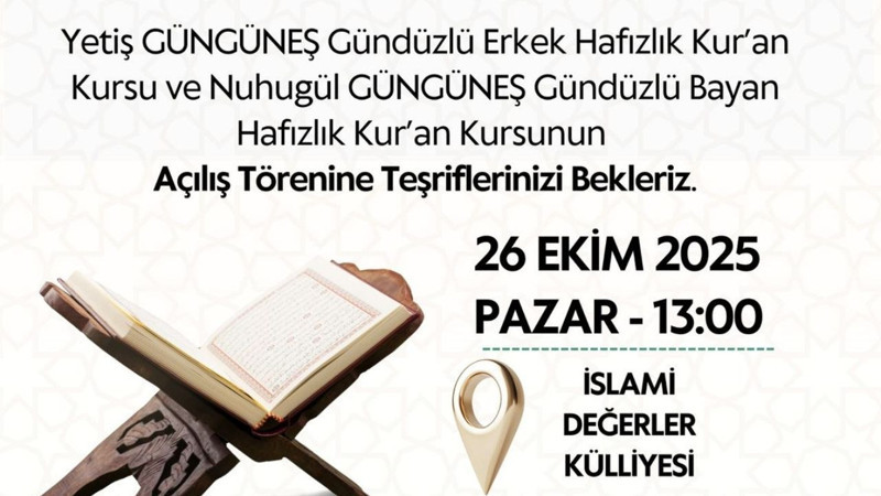 Açılışa katılacaklar için kurslar, Nuhugül Güngüneş’in bayanlar için Gündüzlü Hafızlık Kur’an Kursu ve Yetiş Güngüneş’in erkekler için Gündüzlü Hafızlık Kur’an Kursu olarak belirlendi.