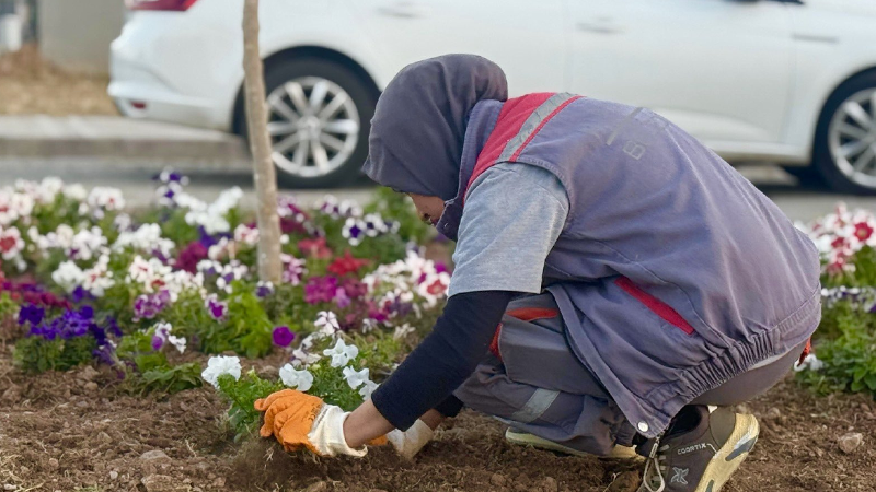 Ekipler, Millet Bahçesi’nde ağaçlandırma, çiçeklendirme ve çevre düzenleme faaliyetlerini titizlikle yürütüyor. Mevsimine uygun renkli çiçekler ve çeşitli bitki türleriyle zenginleştirilen alan, estetik görünümünün yanı sıra ekolojik dengeye de katkı sağlıyor.