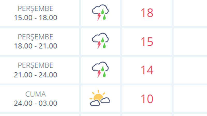 Yapılan son değerlendirmelere göre, saat 15 itibariyle gün sonuna kadar devam eden periyotta kent genelinde yerel olarak kuvvetli sağanak ve gök gürültülü sağanak yağış bekleniyor.