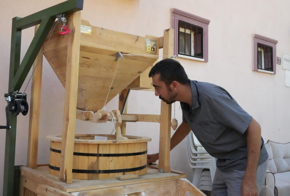 Kültür ve Turizm Bakanlığı ahşap torna sanatçısı olan Cesur, "Dağlardan kestiğimiz granit taşları buraya getiriyorum. Burada yuvarlıyor, çemberini çiziyor, deliğini açıyoruz. Demir şase üzerine bu şekilde, ev elektriğiyle çalışan 220 voltluk doğal taş değirmeni imalatı yapıyoruz. Bu değirmenimiz, atalarımızın kullandığı su değirmeni kıvamında olduğu için unu yakmadan tam buğday unu üretiyor. Aynı zamanda bulgur, tuz, kahve, tahin gibi malzemeleri de çekebiliyor. Taşın kesilip buraya getirilmesi ve bu hale getirilmesi yaklaşık bir ayımızı alıyor" dedi.