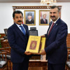 Ziyaretin sonunda Doç. Dr. Şahin, Vali Demiryürek'e Kurum yayınlarından, sempozyuma da adını veren ve Türk yazı dilinin en önemli eserlerinden biri olan Aşık Paşa’nın “Garib-nâme” adlı eserini takdim etti.