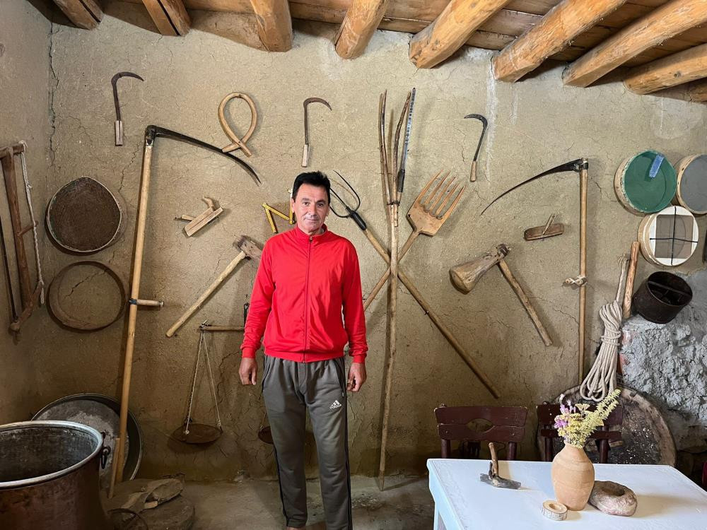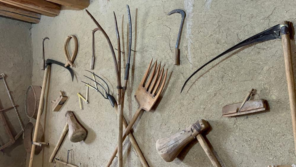 Kırşehir'in Çiçekdağı ilçesinde yaşayan Hasan Tekin; dedesi ve babasından miras kalan 100 ila 150 yıllık el yapımı tarım aletlerini, evlerinin bahçesinde bulunan eski bir ekmek tandırında sergiledi.