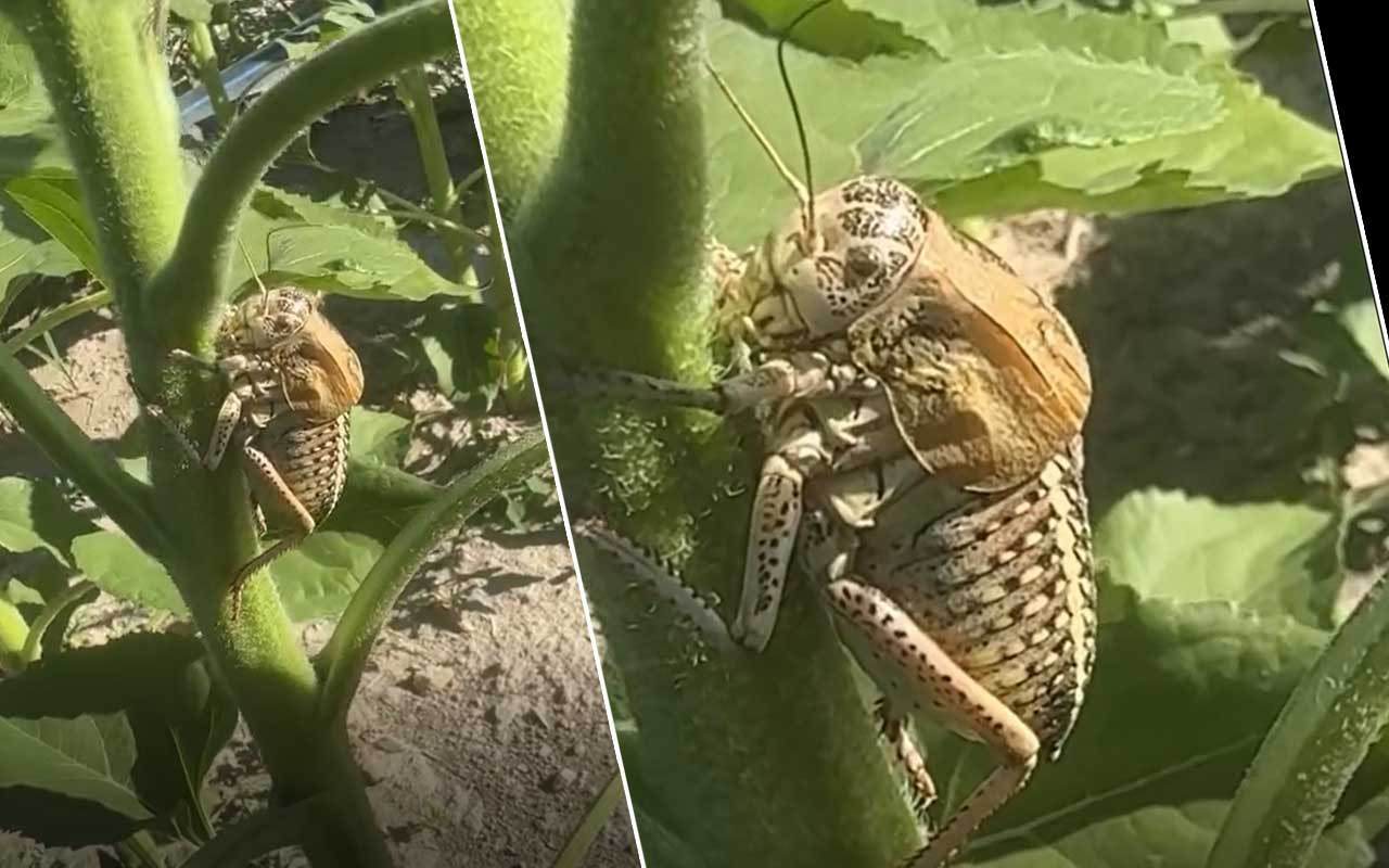Dr. Zehra Tozlu açıklamasında, "Kırşehir'de ilk kez bulunan bir böcek. 'Yamyam tombul çekirge' olarak biliniyor. Vatandaş ihbarıyla geldik. Şehirde ilk kez büyük bir çekirge görüldü" dedi.