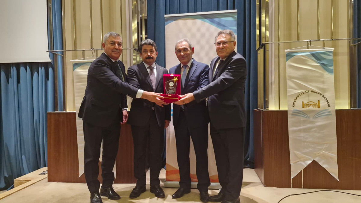 Program sonunda Kırşehir Valisi Murat Sefa Demiryürek, Kırşehirli Eğitimciler Derneği Başkanı Prof. Dr. Recep Kılıç ve Kırşehirli Dernekler Federasyonu Genel Başkanı Hilmi Gökçınar, Mesleki Eğitim Sendikası Genel Başkanı Şahap Yılmaz’a plaket takdimi yapıldı.