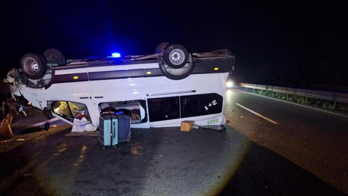 Öte yandan TEM Otoyolu’nun Bolu geçişinde, İstanbul istikametinde bariyerlere çarpan yolcu minibüsü yolda ters döndü.