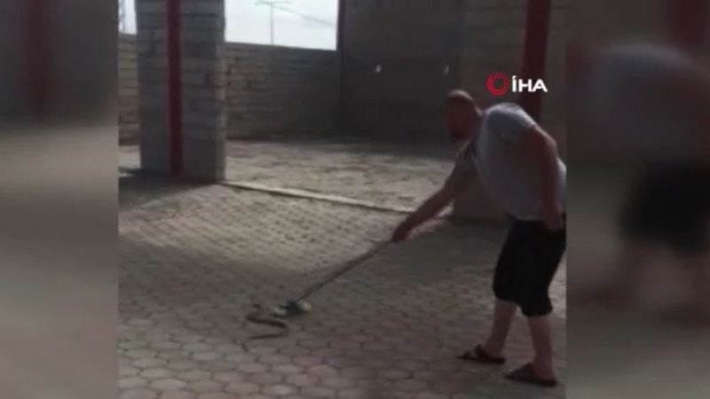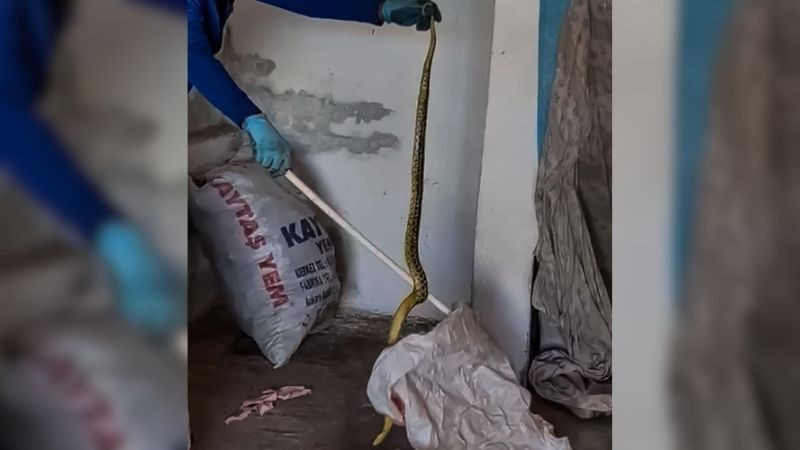 Ev sahibi Oğuzhan Şahinaslan, yılanı bir sopa yardımıyla çuvala koyarak belediye çalışanı arkadaşıyla birlikte güvenli bir şekilde doğaya saldı. Şahinaslan, “Avlumuza yılan gelmiş, eve kadar girmiş. 2 metre büyüklüğündeydi. Ali isimli belediye personeli arkadaşımın yardımıyla bir torbaya koyduk, zarar vermeden doğaya geri saldık.” dedi.