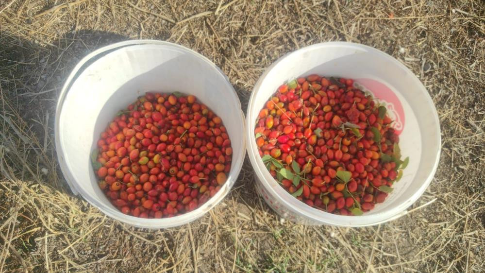 Yozgat’ta severek tüketilen kuşburnuları, doğadan zorlukla toplama mesaisi için kollar sıvandı.