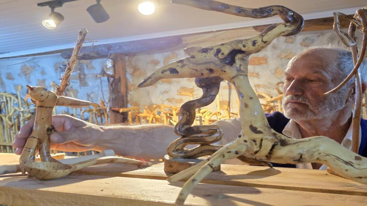 Yozgat'ın Aydıncık ilçesinde yaşayan Raşit Öztürk, ormanlık alandan topladığı ağaç parçalarına hayal gücünün sınırsız esintileriyle binbir şekil veriyor.