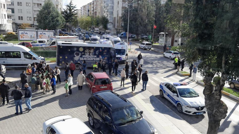 Kaza, Üçtutlar Mahallesi Fatih Caddesi'nde meydana geldi. Edinilen bigliye göre, kitap fuarına giden 19 Mayıs İlkokulu öğrencilerinin bulunduğu belediye halk otobüsü, caddede seyir halinde olan kamyona yandan çarptı. Çarpışmanın etkisiyle otobüste bulunan 22 öğrenci yaralandı. İhbar üzerine olay yerine gelen sağlık ekipleri tarafından ilk müdahaleleri yapılan öğrenciler çevredeki hastanelere kaldırıldı. Öğrencilerin sağlık durumlarının iyi olduğu öğrenildi.
