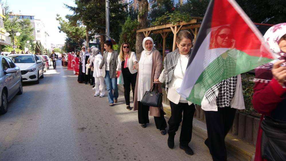 Yozgat'ta ve ülke genelinde düzenlenen yürüyüşe 7'den 70'e her yaştan kadın katıldı. Yozgat terminali mevkiinde toplanan kalabalık el ele tutuşarak insanlık zinciri oluşturdu. Farkındalık oluşturmak amacıyla beyaz kıyafetler tercih eden ve omuzlarına kefiye alan kadınlar taşıdıkları dövizlerle dikkat çekti. “Daha adil bir dünya mümkün”, “Özgür Filistin”, “Dünya Beşten Büyüktür”, “Barış kadınla mümkün” gibi yazılarla sessizce yürüyen kadınlar Cumhuriyet Meydanında toplanarak Gazze için tek yürek oldu.