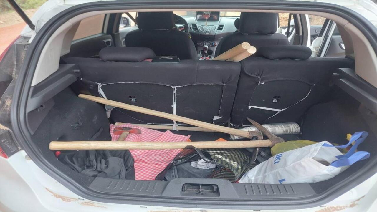 Kaçak kazıda kullanılan kazma, çapa, 2 adet kürek ve metal el dedektörü ele geçirildi.