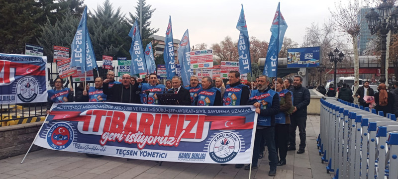 Tüm Eğitim Çalışanları Sendikası (TEÇ-SEN), Milli Eğitim Bakanlığı’nda görev yapan eğitim yöneticilerinin ve diğer eğitim çalışanlarının haklarının iyileştirilmesi için Ankara’da MEB binası önünde eylem gerçekleştirdi.