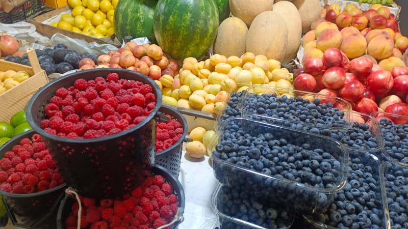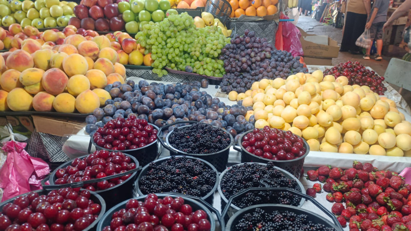 Pazarda bulunan taze meyve ve sebze çeşitliliği ve bolluğuyla şaşırtıyor. Ahudududan karpuza, muzdan yaban mersinine kadar Gürcistan’ın bereketli topraklarında yetişen yeşillikler taze ve doğal. Kovalar içinde satılan acur, lahana ve birçok turşu çeşidi pazardaki yerini alıyor. Baharat tezgahlarında ise kırmızı biberden kurutulmuş aromatik otlara kadar pek çok çeşit bulunuyor.