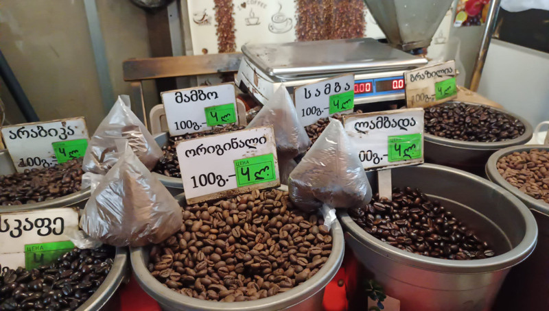 Pazarın en dikkat çekici ürünlerinden biri kabuksuz taze ceviz. Cevizlerin kilosu ise 30 GEL. Özellikle Gürcü mutfağında ulusal lezzetler arasında olan bayramlarda önemli günlerde, yeni yılda tüketilen cevizli sucuklar (churchkhela) ve pestiller, pazardaki tezgahlarda sıra sıra asılı şekilde sergileniyor.