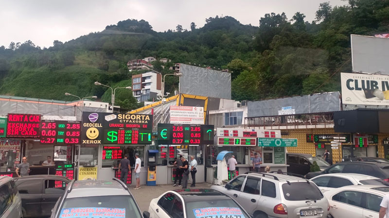 Sınırdan geçen yolcuları yalnızca işlemler sırasında değil, çıkışta da kalabalık bir ortam bekliyor. Sınır kapısı çıkışında yolcuların etrafını saran bazı kadınlar, ellerindeki parfüm ve çeşitli ürünleri satmaya çalışıyor. Vatandaşlar 1 Gürcistan larisi 15.15 TL olduğu için burada paralarını lariye cevirmek için dövizlere yöneldi.