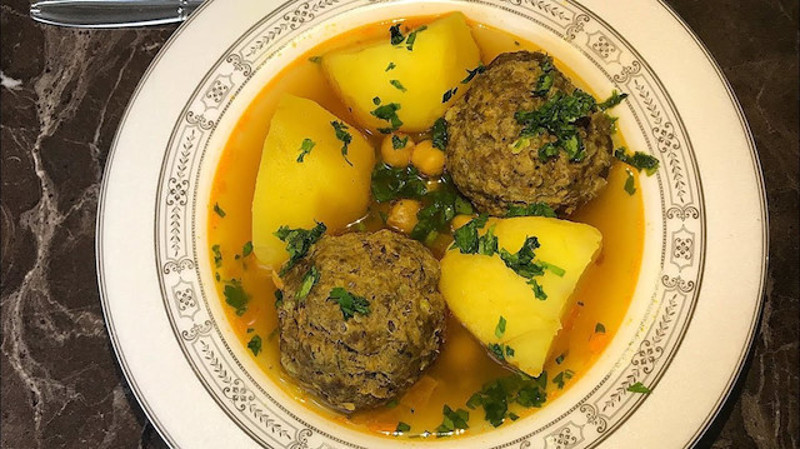 İçinde erik bulunan büyük köfteler patates ve nohutla birlikte haşlanır. Zerdeçal aromasıyla harmanlanan bu yemek oldukça doyurucudur.