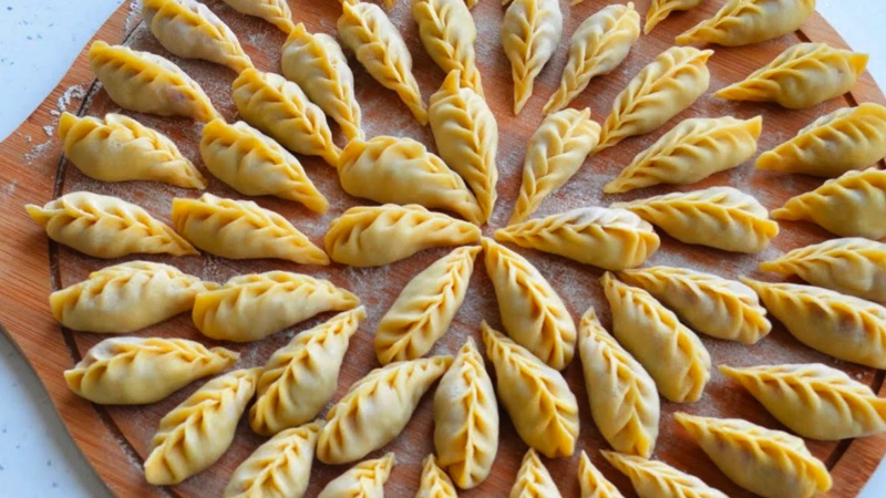 İç harcında kuyruk yağı da bulunan kıymalı mantılar haşlanır, yoğurtla ya da tereyağlı sosla sunulur. Şekli Çin mantısını andırır.