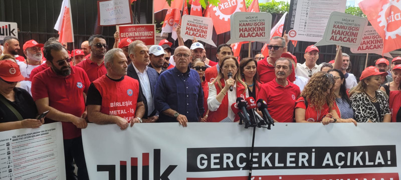 "Asgari Ücret Tespit Komisyonu acilen toplanmalı, asgari ücret güncellenmelidir. Emekliler, kamu emekçileri ve tüm çalışanlar için kayıplar telafi edilmeli; büyümeden hak ettikleri pay verilmelidir. En düşük emekli aylığı asgari ücret düzeyine çıkarılmalıdır. Kamuda çalışan işçilerin TİS süreçleri hızla tamamlanmalı, insanca yaşanacak ücret talebi karşılanmalıdır. TÜİK'e bir kez daha hatırlatıyoruz: Siz enflasyonla mücadele kurumu değilsiniz. Sizin göreviniz, halkın yaşadığı gerçekliği doğru ve şeffaf biçimde ölçmektir. Ama siz ne yapıyorsunuz? Yargı kararlarını uygulamıyorsunuz. Mahkemelerin 'açıklayın' dediği verileri karartıyorsunuz. Halkın ekmeğiyle oynuyorsunuz! TÜİK'in verileri sadece akademik bir mesele değil; toplumsal adaletin, ücretin, emekliliğin, geleceğin meselesidir. TÜİK madde fiyat listesini açıklamadıkça, bu ülkede adaletli bir ücret politikası kurulamaz. TÜİK'in bu hukuksuzluğuna siyasi iktidar da ortak olmaktadır. Anayasa'yı, yasaları ve yargı kararlarını yok sayan bu anlayış, yalnızca TÜİK'te değil, ülkenin dört bir yanında hukuksuzluğu kural haline getirmeye çalışmaktadır. Biz bu düzeni kabul etmiyoruz."