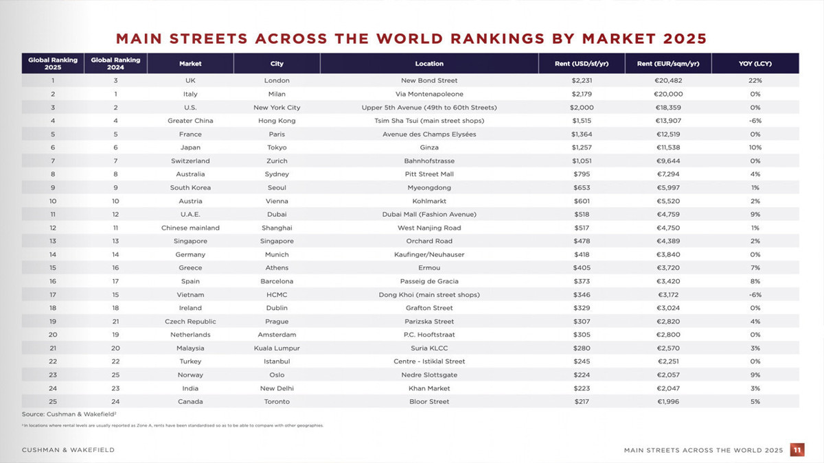 Cushman & Wakefield’ın “Dünya Geneli Ana Caddeler 2025” raporu açıklandı. Listede Türkiye'den sadece bir şehrin caddesi yer aldı.