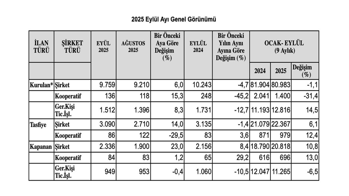 TÜRKİYE'DE SADECE EYLÜL'DE 2 BİN 336 ŞİRKET KAPANDI