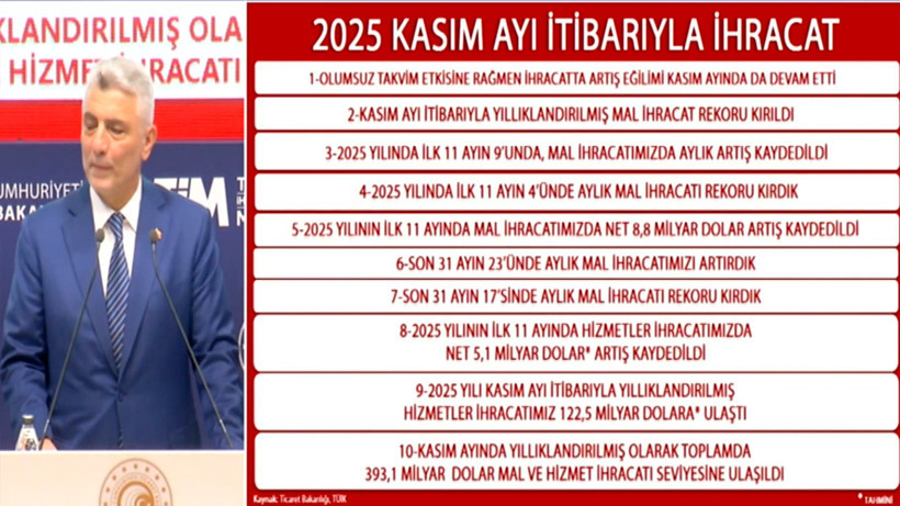 Ticaret Bakanı Ömer Bolat, 2025 yılı kasım ayı ve ocak-kasım 11 aylık dış ticaret verilerini kamuoyu ile paylaştı.