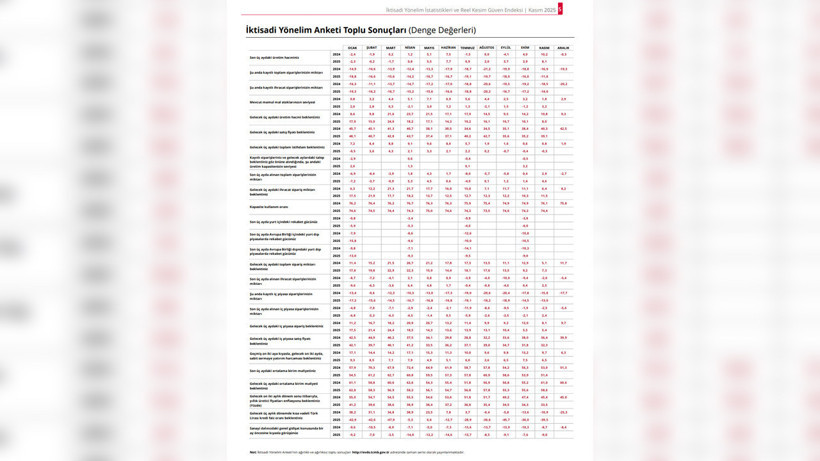 Türkiye Cumhuriyet Merkez Bankasının (TCMB) yayımladığı Kasım 2025 İktisadi Yönelim İstatistikleri, reel sektördeki dengelerin yıl boyunca dalgalı bir seyir izlediğini gösterdi. Sanayicilerin üretim, sipariş, ihracat ve maliyet beklentilerini ortaya koyan ankette; özellikle iç talep, ihracat siparişleri ve rekabet gücüne ilişkin verilerde zayıflama dikkat çekti.