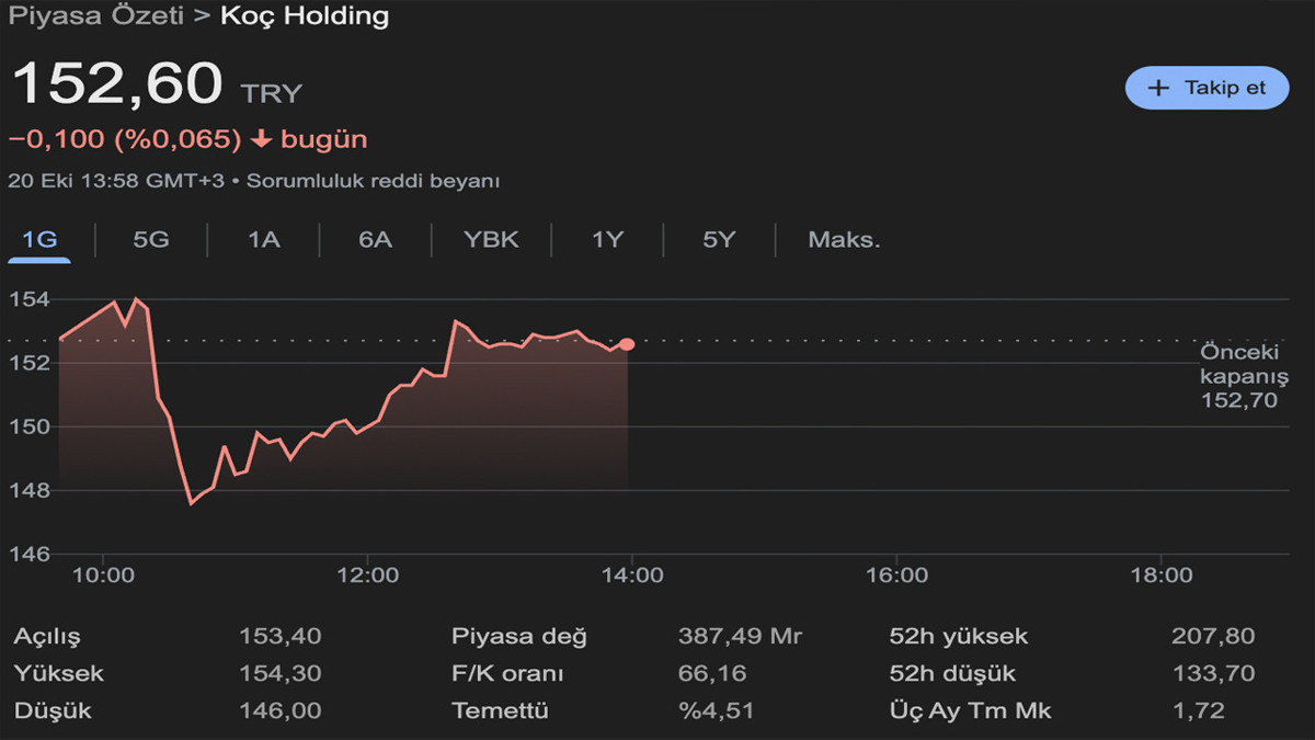 Bu gelişmenin ardından Koç Holding (KCHOL) hisselerinde sert bir düşüş yaşandı. Gün içinde 154,1 seviyesine kadar çıkan hisseler, açıklamanın ardından 146,2’ye geriledi. Saat 11.26 itibarıyla hisse 149,7 seviyesinde işlem görüyor.