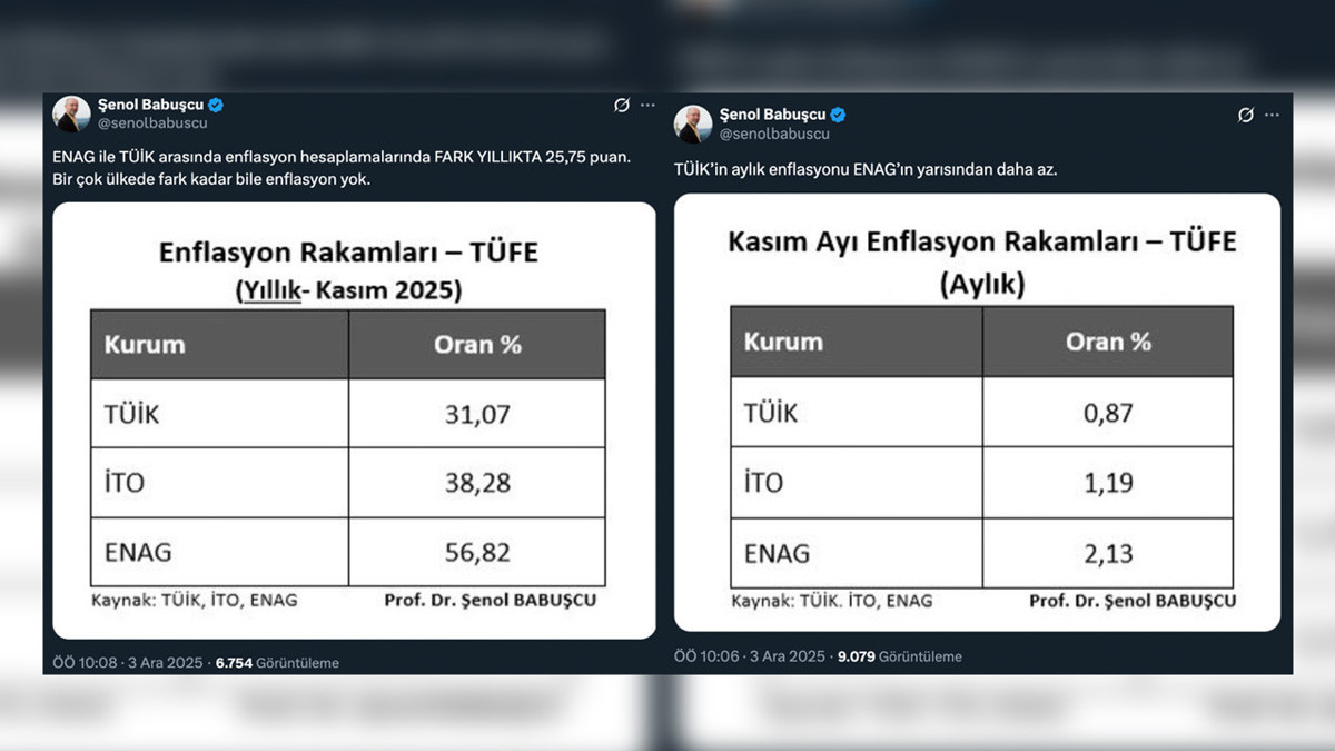 Ekonomist Şenol Babuşcu, TÜİK’in aylık enflasyonunun ENAG’ın yarısından daha az olduğuna dikkat çekerek durumun absürtlüğünü şu sözlerle açıkladı: