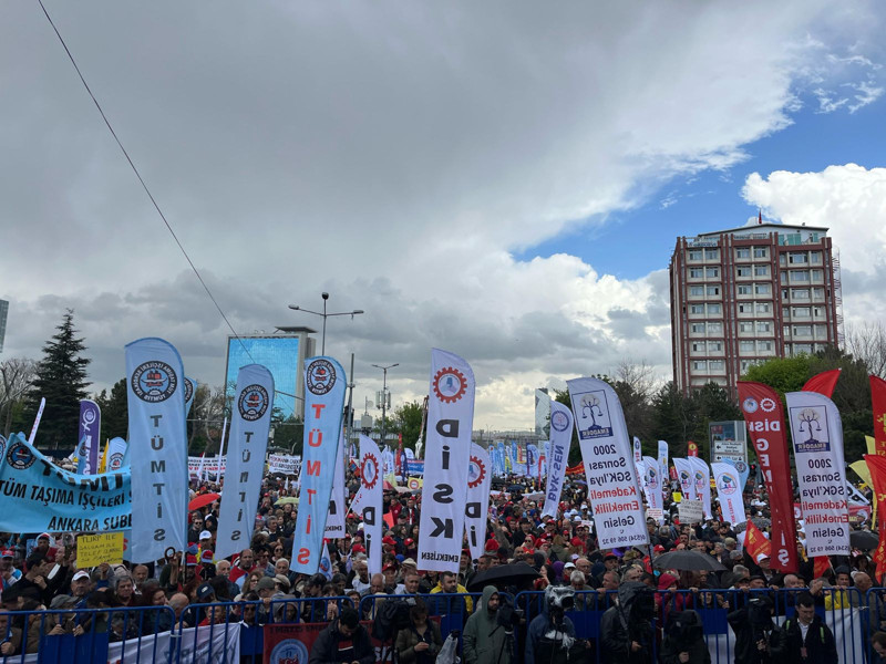 CHP Ankara İl Başkanlığı, meslek odaları, sendikalar ve sivil toplum kuruluşlarının yoğun katılım gösterdiği kutlamalar öğle saatlerinde başladı. Atatürk Kültür Merkezi’nde bir araya gelen gruplar, davul-zurna eşliğinde kortej oluşturarak Anadolu Meydanı’na yürüdü. Ancak yürüyüşe damga vuran detaylardan biri, işçilerin taktıkları şapkaları yere vurarak gerçekleştirdikleri sembolik protesto oldu. Bu hareket, “Artık yeter, emeğimizin hakkını istiyoruz!” mesajıyla yankılandı.