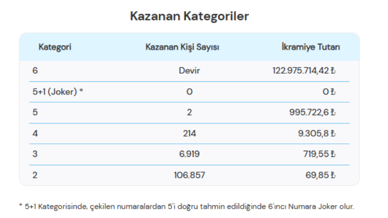 Son çekilişte kazanan kategori ve ikramiye tutarları şu şekilde açıklandı: