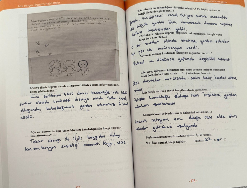 Bundan yola çıkarak depremzedelerin duygu ve düşüncelerini almak için sekiz soruyla yola çıktık. Depremzedelerde inanılmaz ifadeler ve duygular tespit ettik. Depremzedelere gönderilen yardım kolilerinin içinden mektuplar çıktı, onları derledik. Depremzede çocukların yaptığı resimleri ve mektupları topladık. Sonuç olarak ortaya ‘Bize Her Şey Depremi Hatırlatıyor’ kitabı çıktı. Bu kitabın içinde duygu ve düşünceleri, dramları, sevinçleri ve kederleri görebilirsiniz. İnancın insanı nasıl ayakta tuttuğuna şahit olacaksınız. İnsanların hayata niçin ve nasıl sarıldıklarını görebilirsiniz."