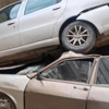 Düşen araç, alt bölümde park halinde bulunan başka bir otomobilin üzerine çıkarak durabildi.