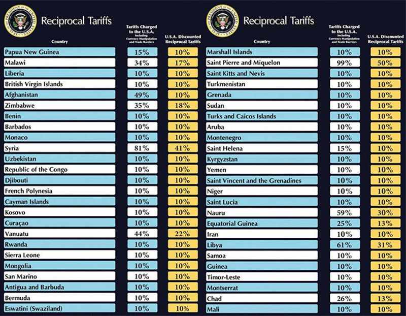 Amerika Birleşik Devletleri (ABD) Başkanı Donald Trump, 2 Nisan 2025 tarihinde ithal ürünlere uygulanacak yeni gümrük tarifelerini duyurdu. Bu kapsamda Türkiye, en düşük oran olan yüzde 10’luk vergi diliminde yer aldı. Yeni düzenlemeye göre, çelik, tekstil, otomotiv ve tarım ürünleri gibi birçok ithal ürün, daha yüksek gümrük vergilerine tabi olacak.