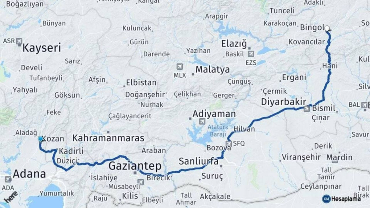 Adana-Bingöl arası kaç kilometre ve kaç saat sürüyor? Özel Araçla ne kadar sürede gidilir?