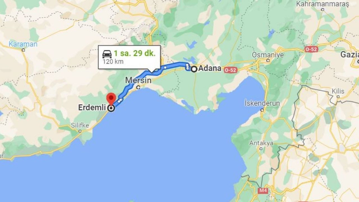Adana-Erdemli arası kaç kilometre ve yolculuk kaç saat sürüyor?