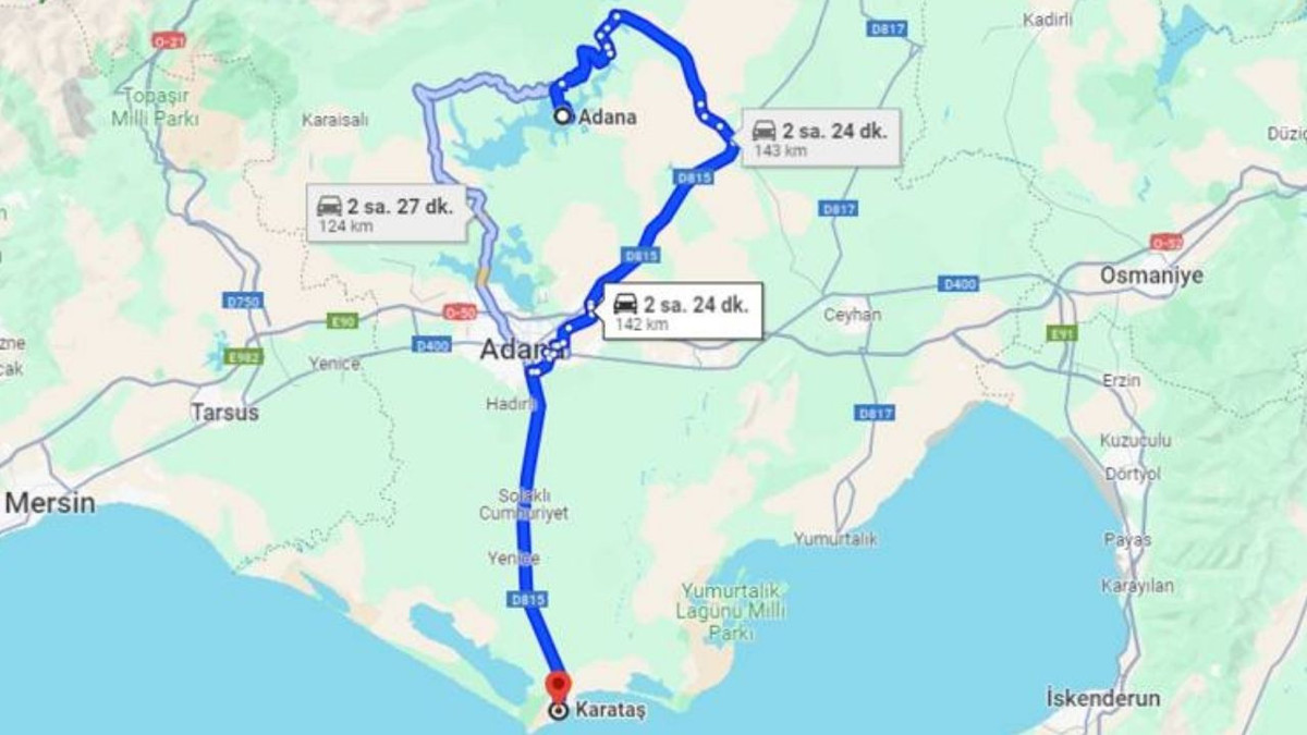 Adana ve Karataş Arası Yolculuk Süresi Adımları