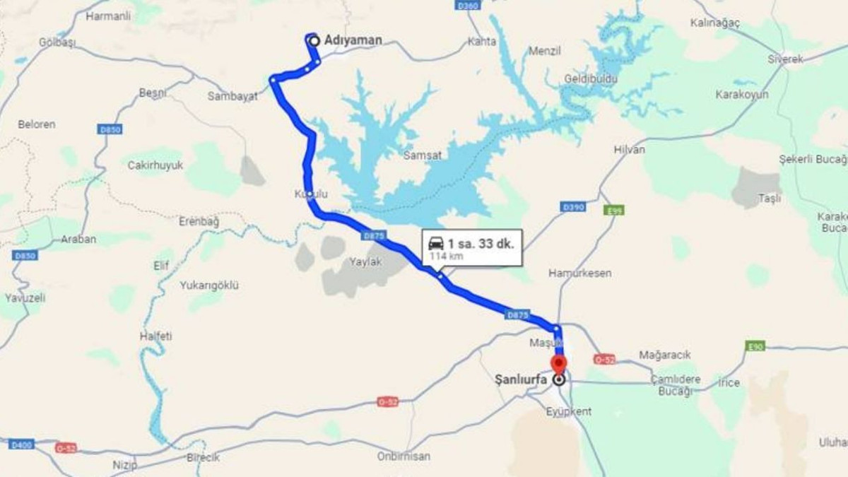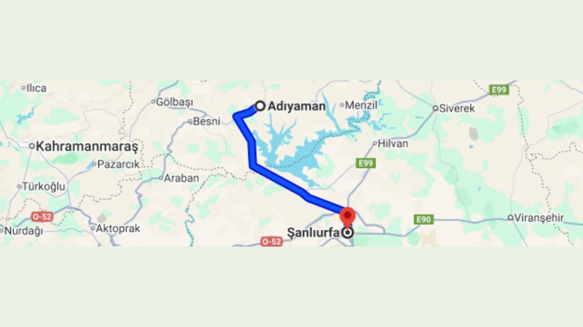 ADIYAMAN ŞANLIURFA ARASI KAÇ KİLOMETRE?