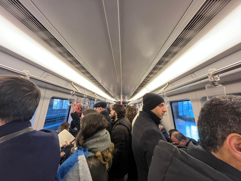 Özellikle metro istasyonlarında yoğunluk dikkat çekerken, yolcuların büyük bir kısmı ayakta seyahat etmek zorunda kaldı.
