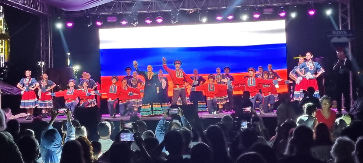 Kültür şöleninde ilk sahne alan ekip Rusya’dan Azontov oldu. Ardından Azerbaycan Azat Halk Dansları Grubu sahne aldı. Bir dansçının Azerbaycan, diğerinin Türk bayrağı taşıdığı an, “İki millet bir devletiz” şarkısı eşliğinde büyük coşku ve duygusal anlara sahne oldu.