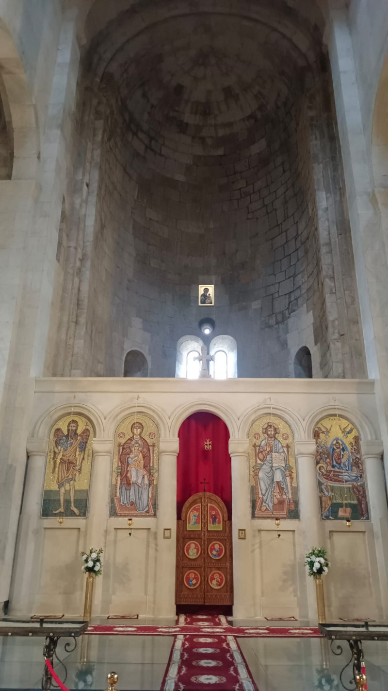 Gürcü Ortodoks geleneğinde rahiplerin cemaate seslenmek, dua etmek ya da ilahi okumak için çıktığı minber, işlevi bakımından camilerdeki minberlerle benzerlik taşıyor. Minbere çıkmak kadar, kırık şekilde yere düşmüş heykellerine dahi büyük özen gösteriliyor. Ziyaretçilerden biri heykelin üzerine çıkmaya kalktığında hemen uyarılıyor.