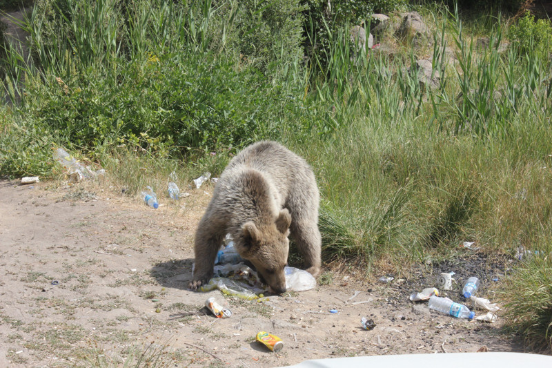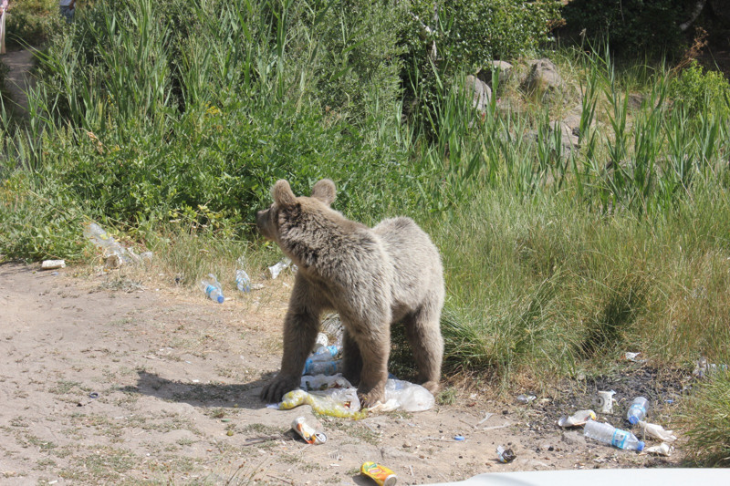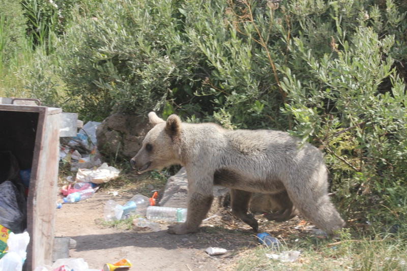 Nemrut Kalderası'nı ziyaret eden gazeteciler, bozayılarla karşılaşmanın heyecanını yaşadı. Nemrut Krater Gölü'nün çevresinde zaman geçiren yerli ve yabancı ziyaretçiler, bölgede yaşamını sürdüren bozayıları beslemeye çalıştı. Aç olan bozayılar, bölgede bulunan çöp konteynırına atılan yiyecekleri yedi.