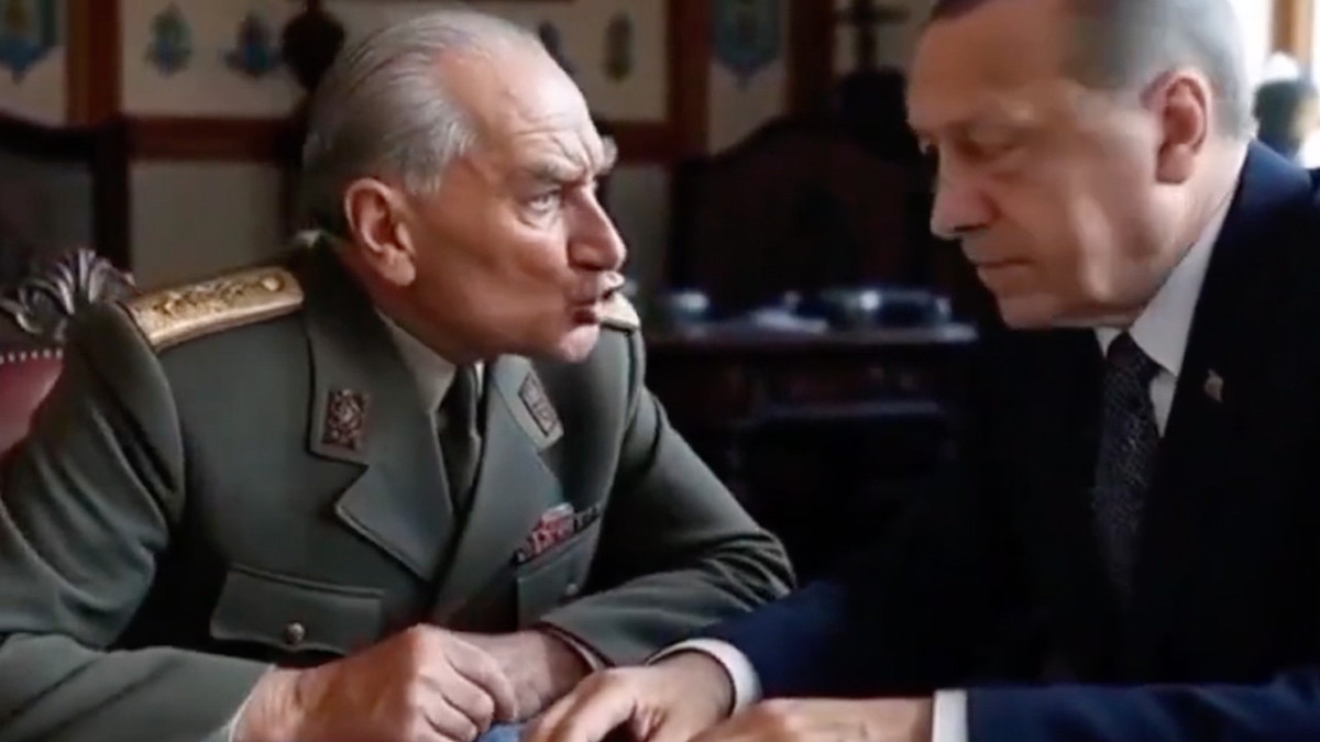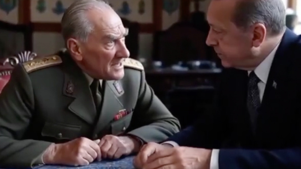 Atatürk ve Erdoğan temasıyla oluşturulan yapay zeka videosunda Gazi'nin Erdoğan'ı güncel konular üzerinden eleştirdiği görüldü. Görüntüde Cumhurbaşkanı Erdoğan'ın mahçup ve Atatürk'ü sessiz bir şekilde dinlediğine ilişkin sahneler mevcut.