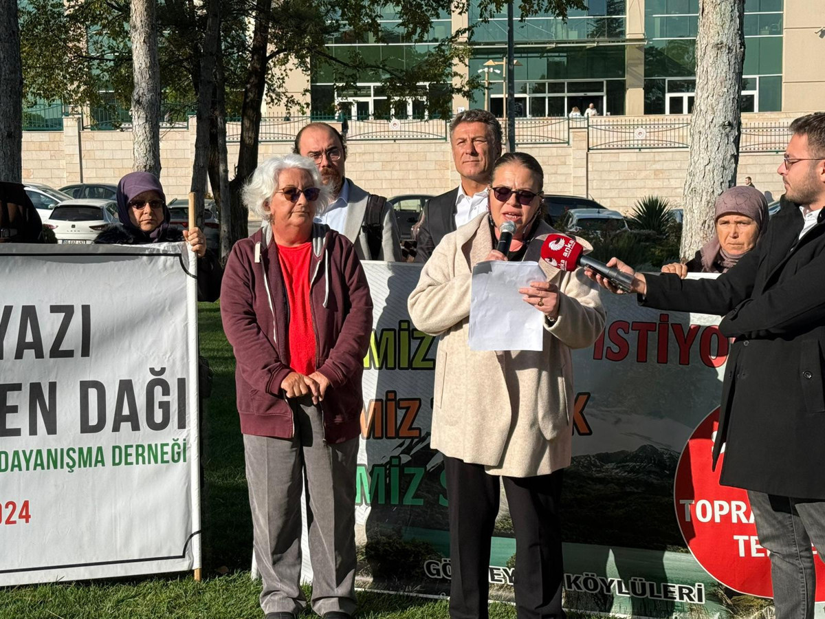 Açıklamada konuşan Gökçeyazı Türkmen Dağı Çevre Koruma ve Dayanışma Derneği Yönetim Kurulu Başkanı Dilek Yalçın ise köylülerin zor durumda kaldığının altını çizerek, “Açık ocak alanı yerleşim yerlerine, Sarıalan köyüne çok yakındır. Açık ocakta yapılan patlatmalar nedeniyle Sarıalan’da bazı vatandaşların evlerinde hasar meydana gelmiştir. Vatandaş CİMER üzerinden Çevre Şehircilik ve İklim Değişikliği Bakanlığı’na şikayette bulunmuş, gelen yanıtta, ÇED Raporu’nun iptali nedeniyle proje alanında faaliyette bulunulmadığı belirtilmiştir. Oysa şirket alanda oldukça riskli bir şekilde çalışmaya devam etmektedir. Bu durum, sağlık koruma bandının ne denli yetersiz olduğunu kanıtlamıştır” ifadesini kullandı.