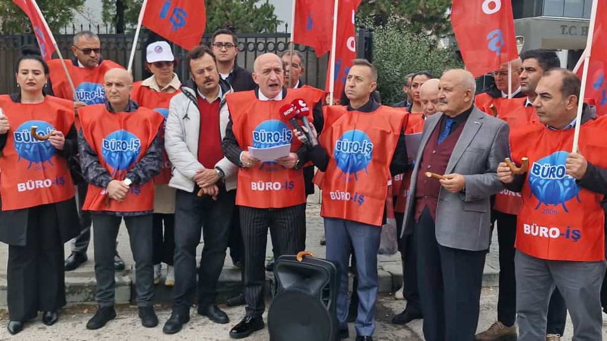 Büro Hizmet Kolu Kamu Çalışanları Sendikası (Büro İş), hükümetin Türkiye Büyük Millet Meclisi’ne sunduğu 2026 yılı bütçesine tepki göstermek için Ankara’da Hazine ve Maliye Bakanlığı önünde bir basın açıklaması düzenledi.
