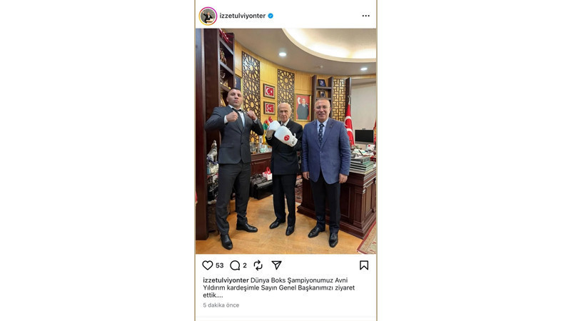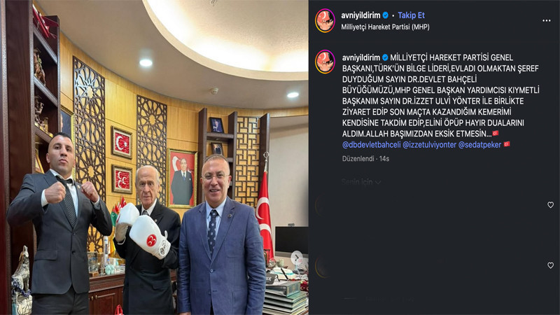 MHP Genel Başkan Yardımcısı İzzet Ulvi Yönter, ziyaretle ilgili olarak Instagram hesabından paylaşım yaptı. Yönter, paylaşımında, “Dünya Boks Şampiyonumuz Avni Yıldırım kardeşimle Sayın Genel Başkanımızı ziyaret ettik.” ifadelerini kullandı.