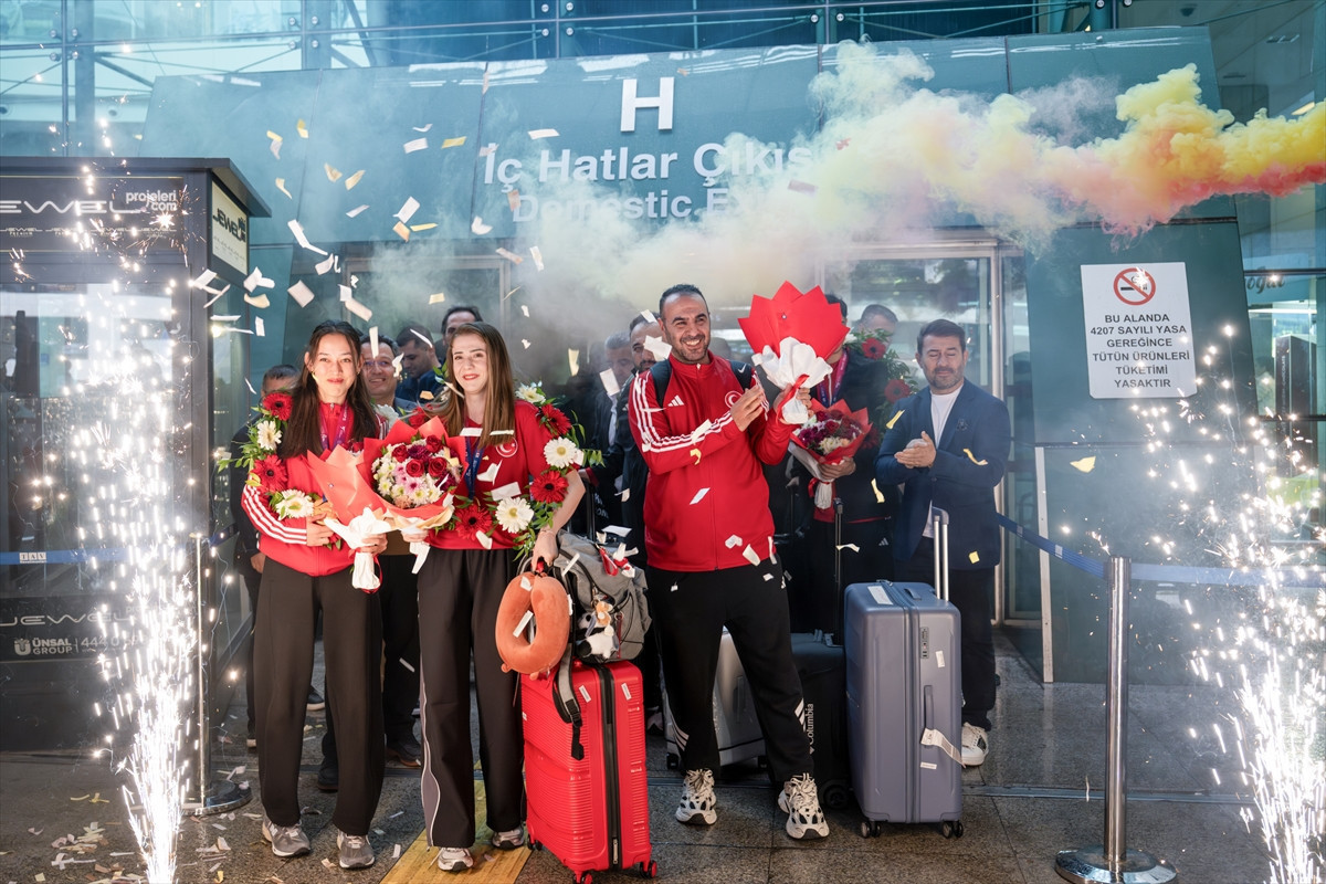Yurda dönüşlerinin ardından İstanbul’dan hava yoluyla Ankara’ya geçen milli sporcular, Esenboğa Havalimanı’nda federasyon yetkilileri, ASKİ Spor Kulübü temsilcileri ve yakınları tarafından çiçeklerle karşılandı. Karşılama töreninde Ankara Büyükşehir Belediyesi Mehteran Takımı da hazır bulundu.