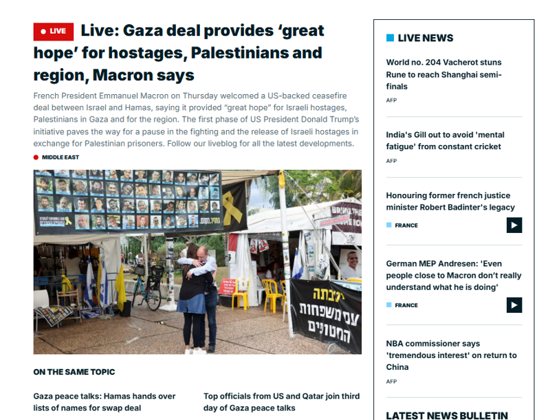 Fransa merkezli France 24 gazetesi ateşkes anlaşmasını manşetten gördüğü haberinde şu ifadelere yer verdi:
