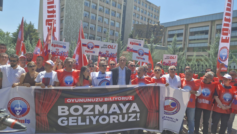 Birleşik Kamu-İş ve Eğitim-İş Sendikası, 8. Dönem Toplu Sözleşme süreci öncesinde Milli Eğitim Bakanlığı (MEB) önünde düzenledikleri basın açıklamasında, öğretmenlerin düşük maaşları ve güvencesiz çalışma koşullarına dikkat çekti.