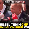 Gürsel Tekin CHP İl Başkanlığı önünde konuştu! Kafasına yabancı madde yağdı