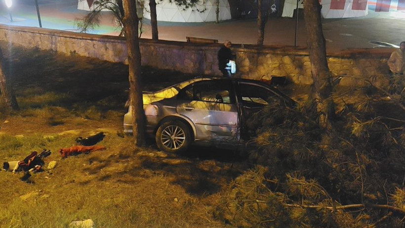 Yoldan çıkan otomobil önce kaldırıma çıktı, ardından yol kenarındaki duvara çarptı. Çarpmanın şiddetiyle savrulan araç, daha sonra elektrik direği ve ağaçlara vurarak durabildi. Hurdaya dönen otomobilin çevresinde büyük hasar oluştu.